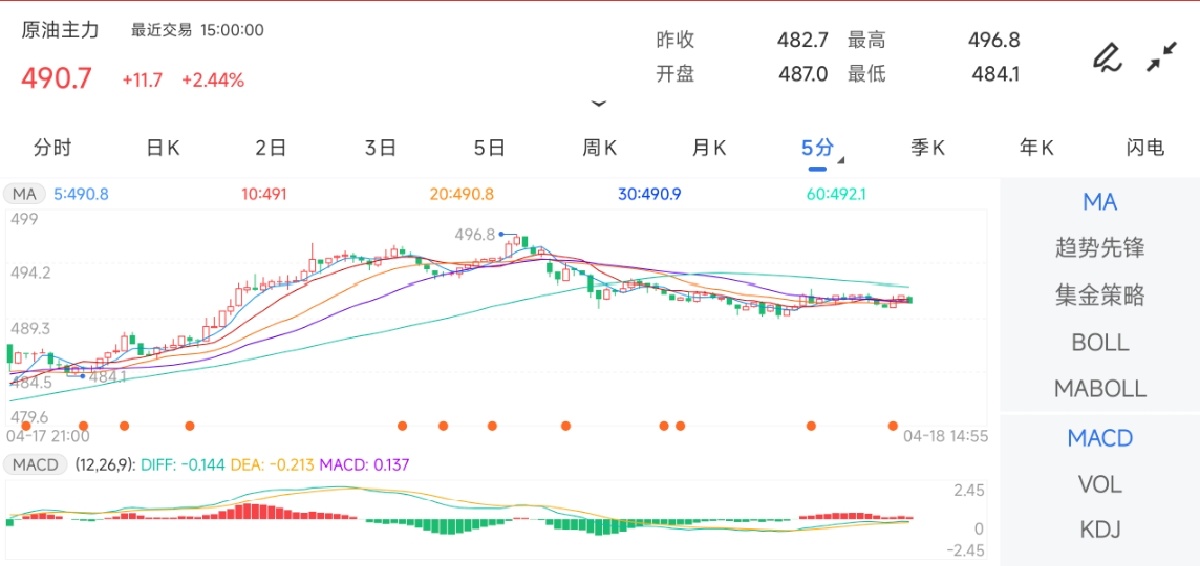 期货 原油开户据此操作风险自担金投网APP行情中央数据显示,截止2025年4月18日下昼15:00收盘,原油期货主力合约行情讯息:最新价:490.7,涨跌:11.7,涨跌幅:2.44%,成交量:165162,开盘价:487.0,昨收价:482.7,最高价:496.8,最低价:484.1。 金投网APP行情中央数据显示,截止2025年4月18日下昼15:00收盘,原油期货主力合约行情讯息:最新价:490.7,涨跌:11.7,涨跌幅:2.44%,成交量:165162,开盘价:487.0,昨收价:482.7,最高价:496.8,最低价:484.1。