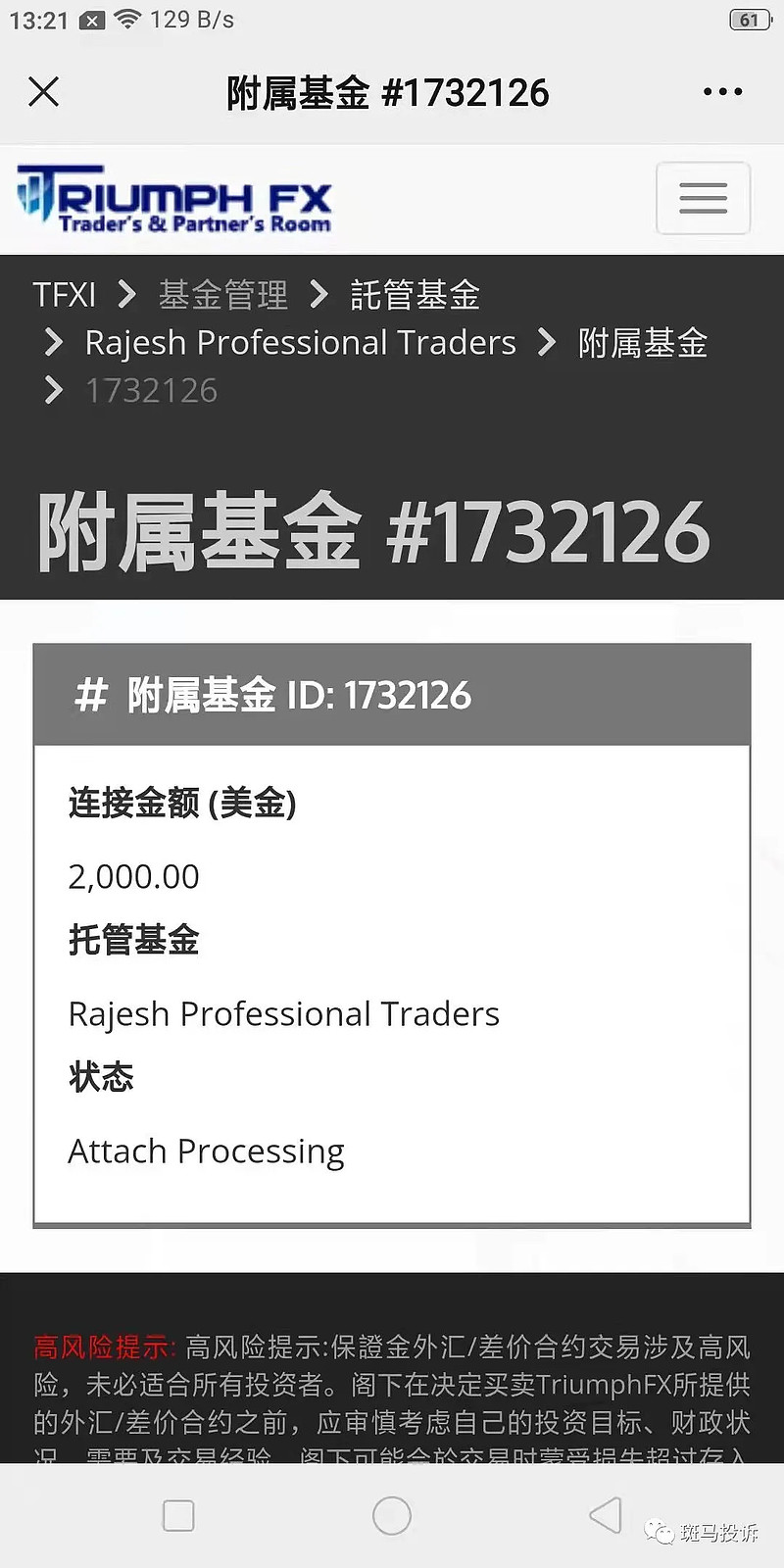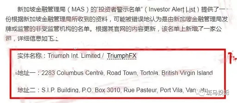 8月5日,新加坡金融囚禁局公布了一份闭于TriumphFX的“投资者警示名单”,外白正在其官网(英文地点网站)更新的实质是差错的——TriumphFX底子没有收到MAS的囚禁。