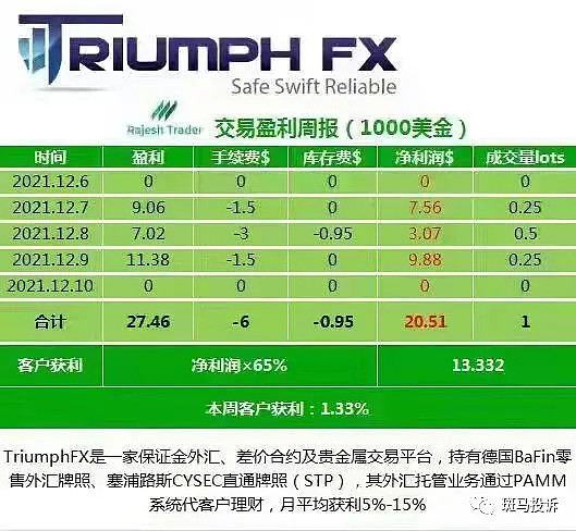 说完囚禁方面,再说一下来往收益的题目。德汇对外传布自身月收益为7%-15%,并以1000仓为例,均匀月收益能够做到7%。借使有这等好事,那还打什么工,躺平就好了。
