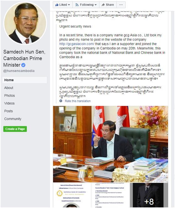 就正在记者侦察该平台功夫,5月17日,柬埔寨邦度总理洪森揭橥推文外现,“急切邦度平和音信,近来GCG ASIA将我名字照片放到网上,称我是该公司的扶助者......依据印尼驻柬埔寨大使馆的说法,GCG ASIA是一家假公司,并被列入黑名单。”