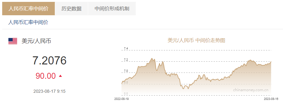 金融界8月17日音问 中海外汇往还中央显示,17日,邦民币兑美元中心价报7.2076,下调90个基点。