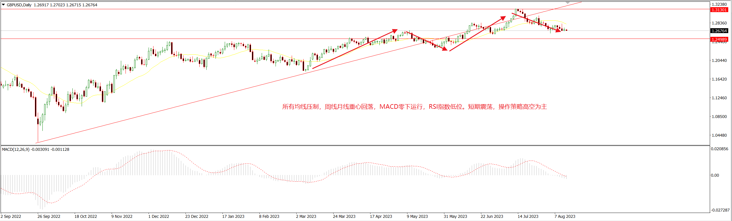 天图上,全部均线压制,周线和月线重心回落,MACD零下运转,RSI指数低位。今日操作政策高空为主,1.0900-1.0890进场,止盈位1.0750,止损位1.1050。