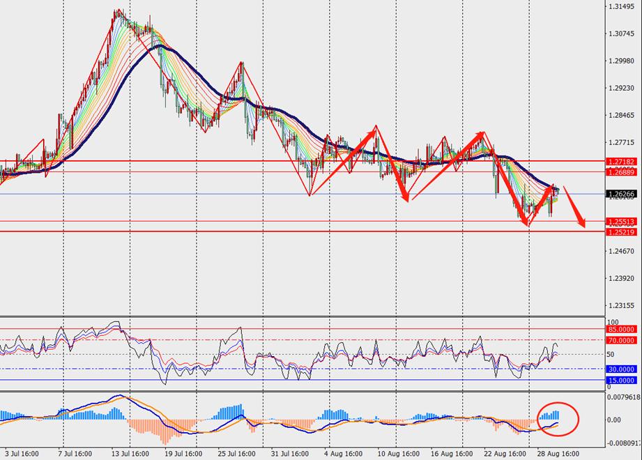 手艺面:镑美H4级别鄙人方撑持带邻近反弹后遇阻,目前汇价正在48日众空分界线邻近运转,另外MACD量能柱正在缩量,双线正在零轴下方不妨死叉,不清扫汇价短期会回调。