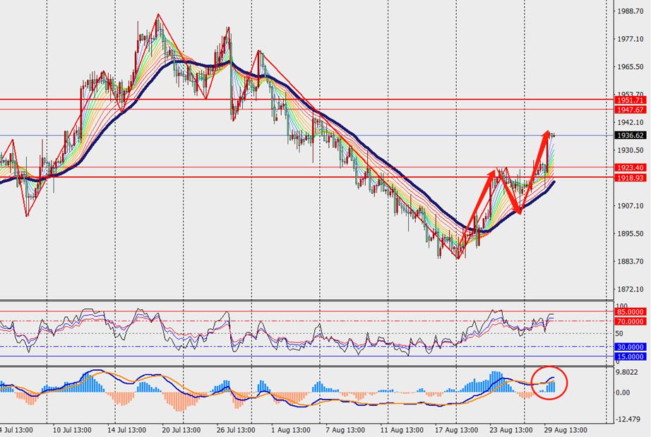 手艺面:黄金H4级别正在1918邻近取得撑持后无间上涨,金价目前运转于48日众空分界线之上。另外,MACD仍然造成顶背离,不清扫金价后期会有所回调。