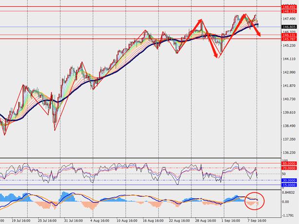 技能面:美日H4级别周一受到周六日本央行戒备道吐影响,开盘后正在148左近下跌,目前依然变成双顶状态,因为日本央行能够会干与货泉市集,不消除日元进一步反弹。