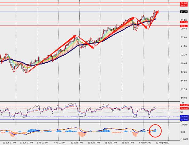 技艺面:油价H4级别再次走高,WTI原油测试了84美元年内高点。上周美邦原油库存增幅横跨预期,但产物库存降幅大于预期,正在自6月底往后的稳步反弹中,根基面接续方向维持油价。