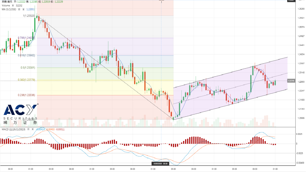 时间面上看,经济学家称英邦目前并不贴近执行负利率,英镑受到提振,日内上涨百余点。但跟着脱欧媾和的担心激情重燃,英镑回吐了泰半的涨幅。日线日均线的双重压造,上涨压力较大。但4小时图能够看到,汇价交投于上升通道之中,昨日的上涨下跌是由于汇价触碰上下轨导致的一定的价钱动摇。目前汇价自下轨触底反弹,有较大的概率向上测试上轨。操作上支柱低众的营业政策,谨慎上方压力位1.2280以及1.2330。