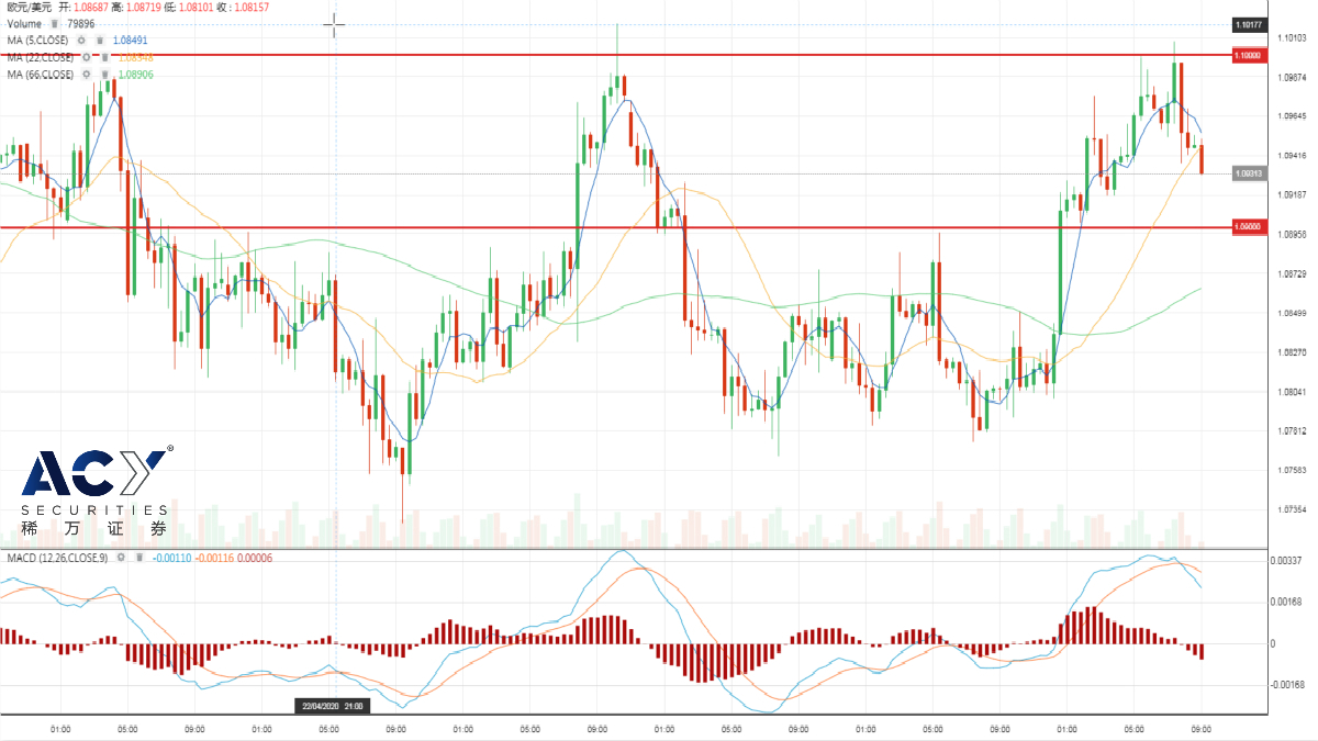 、欧美了局四连涨,或重回跌势周四,当天出炉的数据显示,上周又有200众万美邦人初请赋闲金,同时续请赋闲金人数创记录,使得美元承压。但邦际营业大局的担心激情也给美元供给了极少避险撑持,美元指数最终上涨0.2%,至99.385。欧元兑美元过去四个营业日上涨1.6%,因法邦和德邦近来创议设立5,000亿欧元(合5,430亿美元)苏醒基金,向受疫情影响最急急的区域和行业拨款。乐观激情较弱,欧美了局四连涨,日内下跌0.21%,收报1.0949。今日开盘,欧美延续昨日的跌势,连续下行,暂报1.0931。