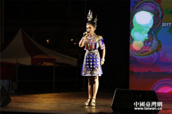 被誉为“侗族歌王”的王馨演唱《乡愁》、侗族歌谣《众嘎众耶》、电视剧《兰陵王》主旨曲《手掌心》。(北京红枫文明公司 赵琪 摄 中邦台湾网 发)