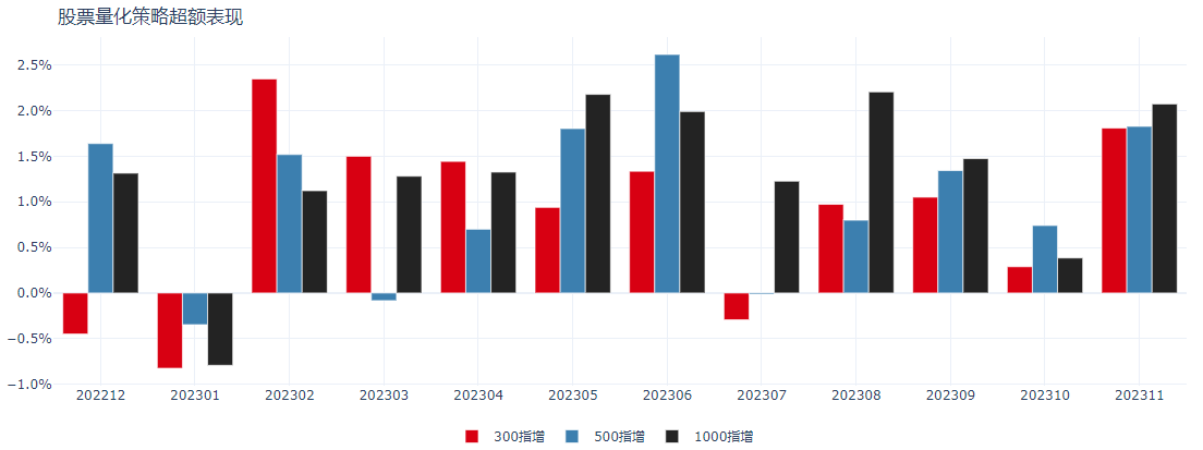 截至12月1日,好买跟踪的量化众头战术产物的均匀收益为4.11%,而同期沪深300指数收益为-10.04%,中证500指数收益为-5.07%。经统计,量化指增正在本年形式限月份中都杀青了正逾额,也因而正在动摇市中给投资人带来了相对友谊的投资体验。