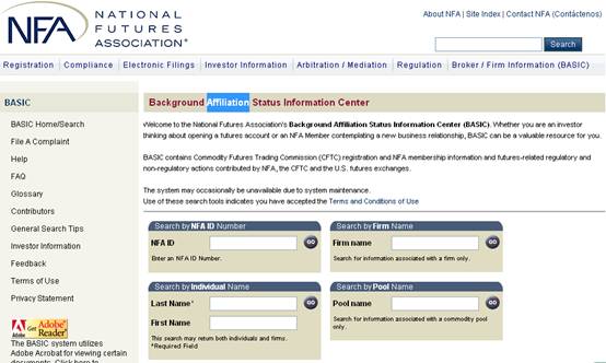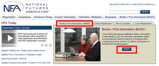 第二步:然后正在NFA首页的中上部找到“Broker/Firm Information(Basic)”,如下图红框所示,点击“BASIC”,如下图红框所示。
