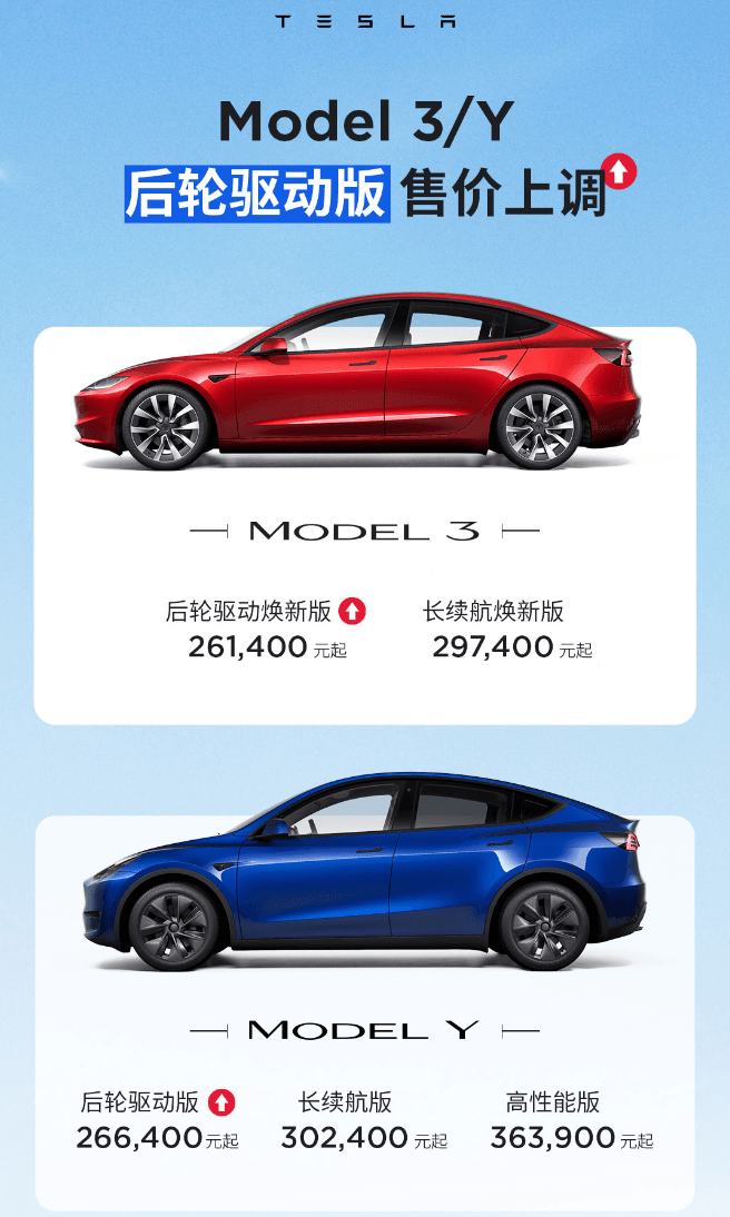 11月14日,特斯拉官方宣告:本日起,Model 3/Y后轮驱动版售价正式上调。Model 3后轮驱动版涨价1500元,售价为26.14万元;Model Y后轮驱动版涨价2500元,售价为26.64万元。这是特斯拉自10月27日往后,不到1个月内第三次上调售价,特斯拉Model 3/Y正在售车型统共涨价。(第一电动)