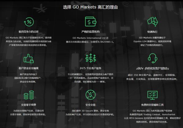 GO Markets还自称是环球外汇行业的诱导者,厉刻遵守拘押机构的闭连恳求,持照筹划,并餍足厉刻的血本恳求,恪守奉行囊括危机束缚、员工培训、管帐和审计等内部步骤。正在外地具有上等级也是厉刻的拘押并正在此拘押下运作。GO Markets International Ltd 正在塞舌尔共和邦注册设立,注册号为 8425985-1,由塞舌尔金融供职束缚局(FSA)依据《 2007 年塞舌尔证券法》发外的证券来往商许可证号 SD043 举行拘押。并正在我方官网上列出了挑选GO MARKETS的9大原因。