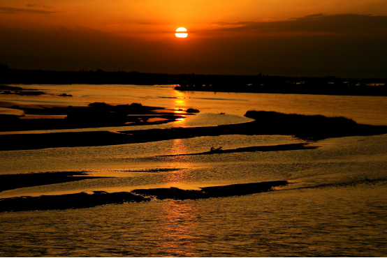 汽车开出302乡道,分开舟塔乡,远方的黄河水和净水河的苦水(含矿物质)正在夕阳的余晖下波光粼粼。