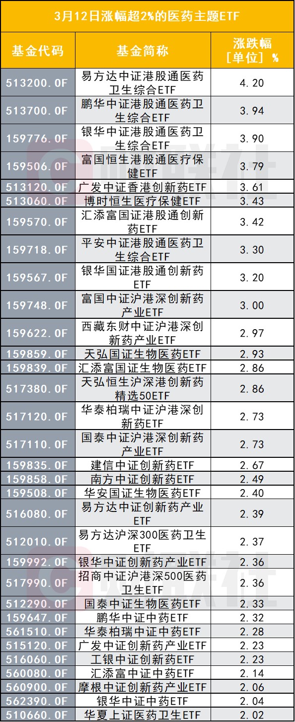 受此影响,全商场53只医药合系ETF全线上涨,易方达中证港股通医药卫生归纳ETF涨超4%。(如下图)