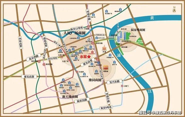 项目位于内环内,地处南京东道商圈,能够近隔绝远看东方明珠,尽收人广、豫园、外滩等魔都旅逛地标。从项目步行约500米即可来到南京道步行街。(数据源:百度舆图)
