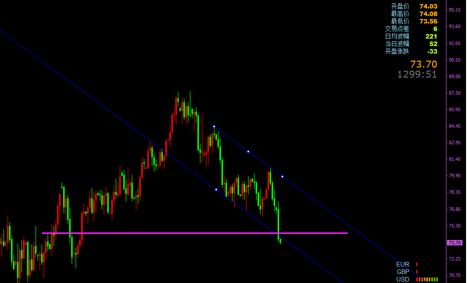 原油反弹74.3/4空,防守75.1,方针看73下方,回踩初睹72.2相近众,防守71.4,方针看74相近