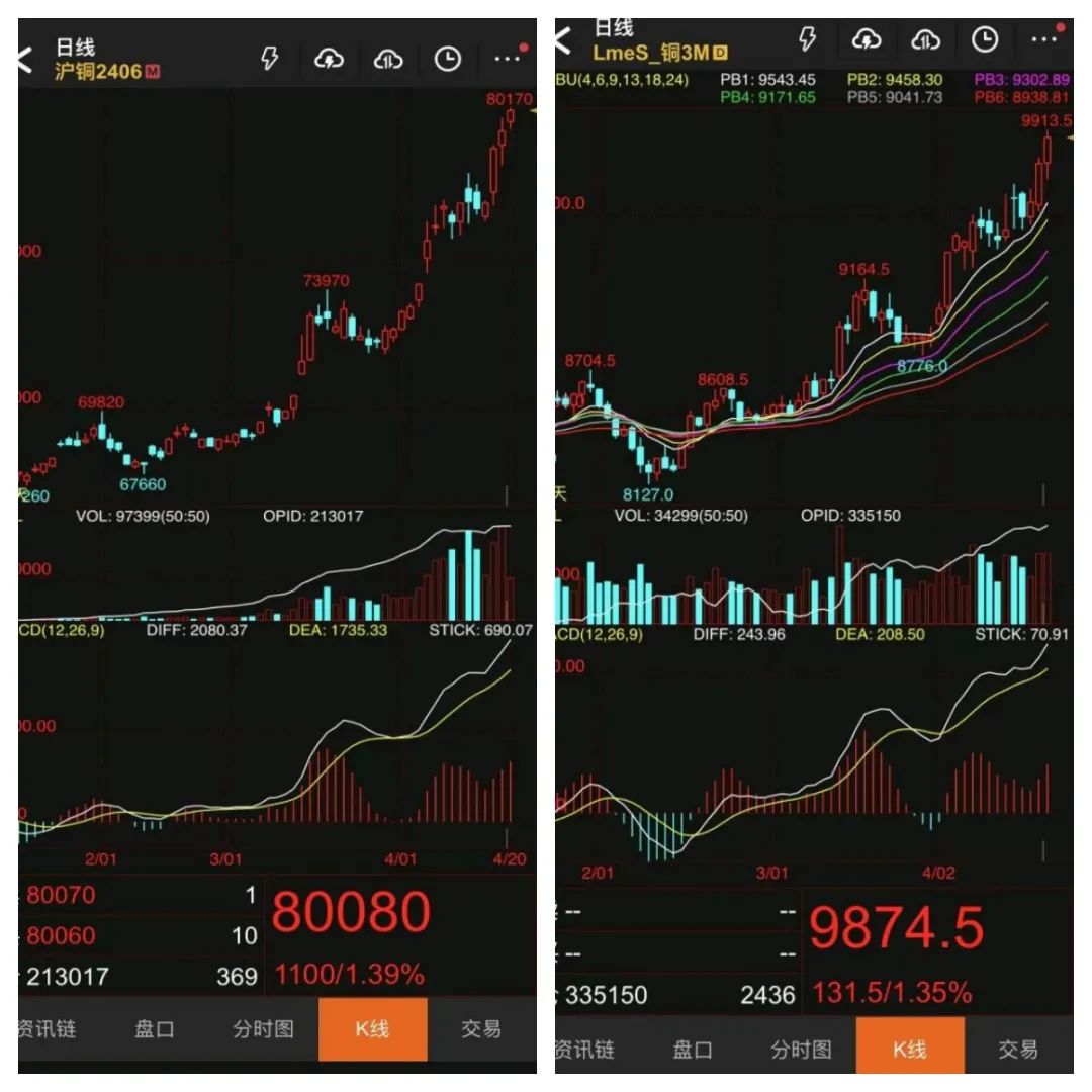 受制于海外高通胀、矿石品位下滑等因素!外汇官方网站黄金代价暴涨之后铜也火了。4月19日,沪铜期货一举冲破8万元/吨,最高至80170元/吨,创下2006年6月以后新高;LME铜价也冲破9900美元/吨,创下2022年4月底以后新高。A股铜矿股也广大上涨,此中北方铜业本年迄今累计涨幅达87.93%。