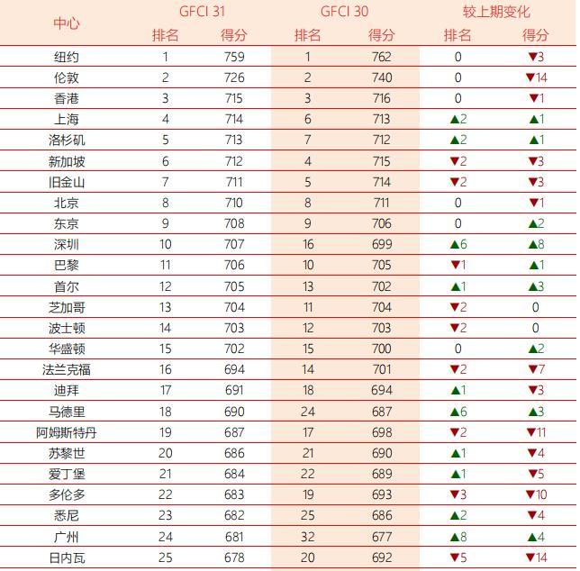 纽约、伦敦、香港再次位居环球金融中央前三甲,但举座评分较上期有所降落,个中伦敦降落幅度最大,抵达14分,香港和纽约仅诀别降落1分和3分,这使得伦敦与纽约的差异进一步加大。