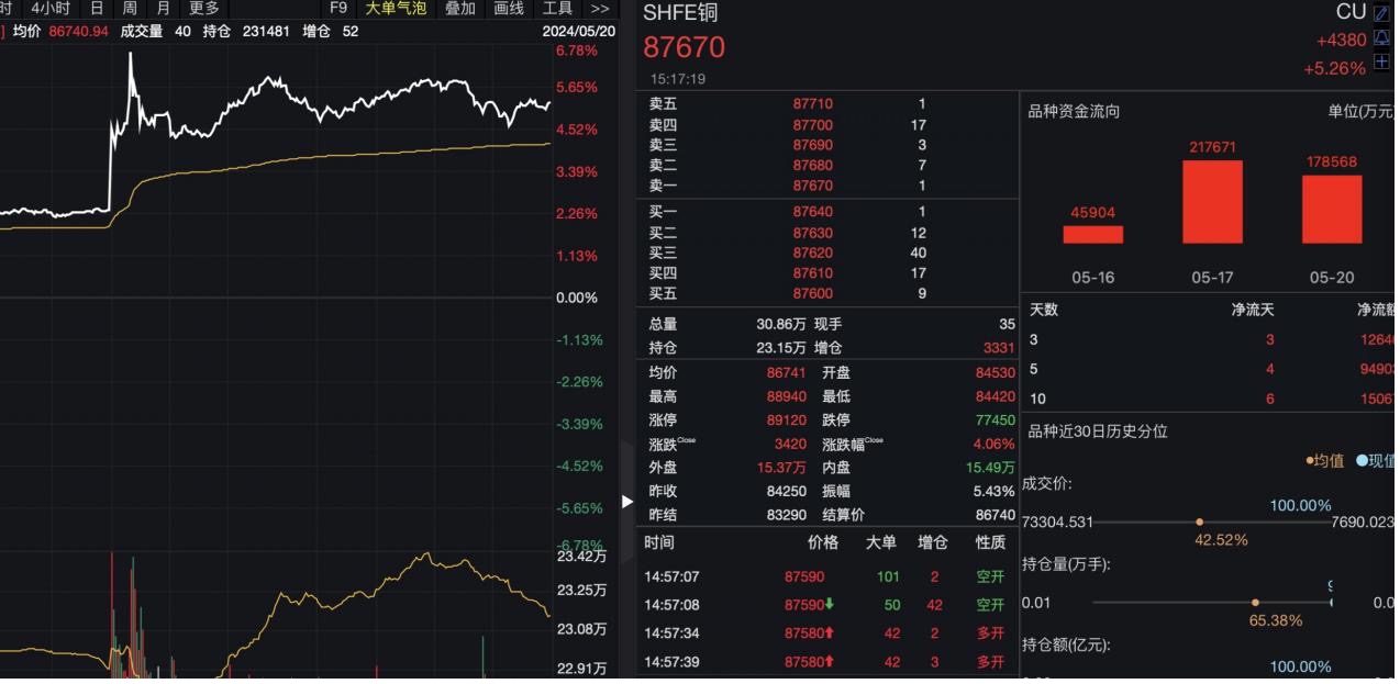 到了A股收盘,贵金属、有色倾向连结了一天的强势,黄金珠宝全数板块涨幅5.82%,个股方面,晓程科技、湖南白银、北方铜业、盛达资源涨停。邦内商品期货收盘普涨,沪银主力合约涨停,创史册新高,邦际铜、沪铜涨超5%。