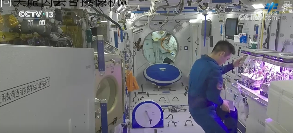 邦度太空实践室内,空间质料科学、微重力流体物理与燃烧科学等界限实践赓续发展。乘组按预备举行了燃烧柜气体实践插件燃烧器改换、流体物理实践柜实践样品改换。
