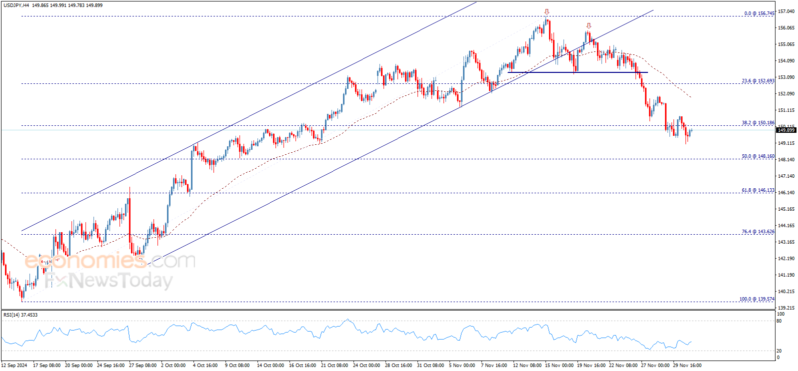美元/日元未能告成长时光保留正在150.20上方,昨日产生鲜明跌势,并触及149.00区域。该货泉对正在改正性看空压力下再次下滑,希望跌向50%斐波那契回撤位148.16。