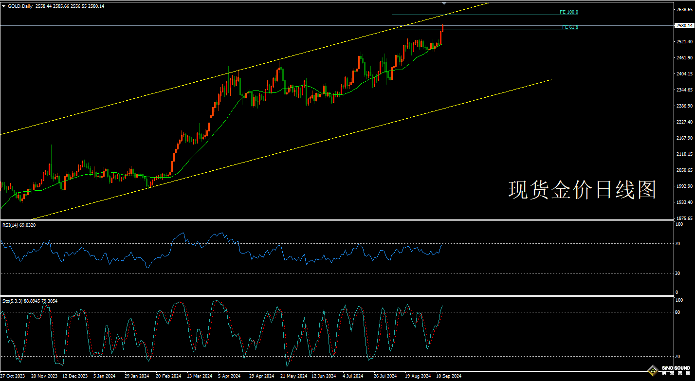 从本事面而言,上周金价以一根上、下影险些能够马虎的大阳线,明了地冲破过去三周的震撼区间,从而酿成了周线级另外N字上攻样子,进一步上行的空间仍旧掀开。从日线上看,金价下半周的不断上行动员20天均线持重抬升,对后续的升势酿成助力,下周金价若胜利冲破2600这个要紧的整数情绪闭口,短期大概进一步对上升通道的阻力位,即2620一线倡导袭击。