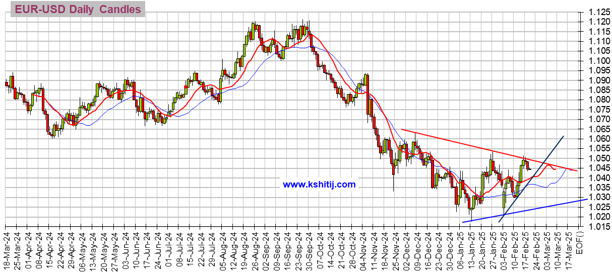 欧元/美元或许会延续陆续的下行走势,并跌向1.04。往后,要么跌破1.04,要么打破1.05,材干进一步了了目标。