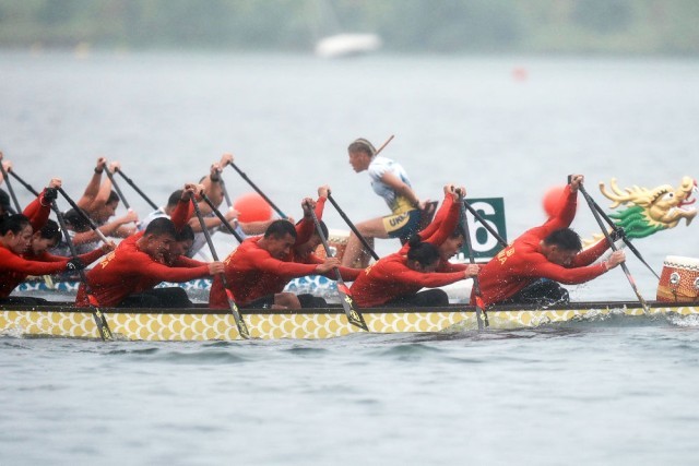 8月10日,中邦队正在2025年成都世运会龙舟10人座2000米追赶赛决赛竞争中。中邦队最终取得第六名。新华社记者 李嘉南 摄