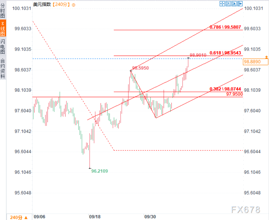 美元反弹走势正迫临玄月高点左近的枢纽本领阻力,十月开盘区间恰于阻力下方开头成型。