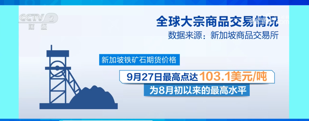 此外,新加坡铁矿石期货价值9月27日盘中一度触及每吨103.1美元,为8月初今后的最高秤谌。