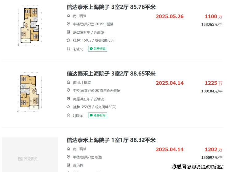 板块二手房方面,筑发项目近邻的上海院子,洋房最新成交价正在12-14万之间。
