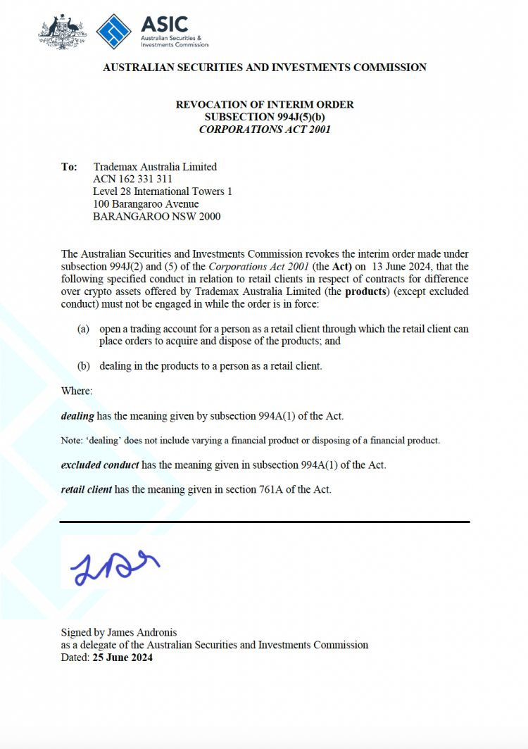 为全球交易者构建一个更加公平、透明的交易生态2025年12月4日TMGM行为差价合约(CFDs)与确保金外汇往还界限的领航者,安静、合规、高效被奉为我集团的毕生职责。澳大利亚证券和投资委员会(ASIC)已正式打消了早前针对TMGM差价合约交易执行的姑且止损令。这一误解的废除,是对公司近期正在合规性及客户掩护步骤方面所做勤恳简直信。