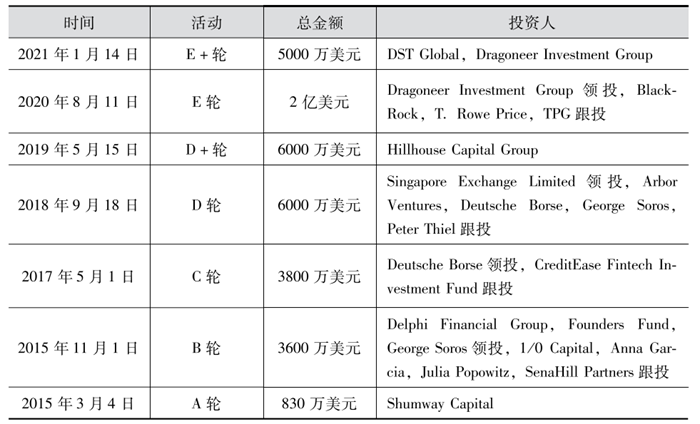截至2021年1月,Trumid共杀青了7轮融资,筹资总额约为4.5亿美元,公司估值达14亿美元。此中正在2018—2019年发作的两次D轮融资中,Trumid得回了来改过加坡证券业务所(SGX)和高瓴资金等亚洲投资机构,以及“金融大鳄”George Soros和硅谷投资家Peter Thiel的青睐。这为Trumid日后与SGX、高瓴资金合营创造合伙公司XinTru,并进军亚洲市集打下坚实的根底。