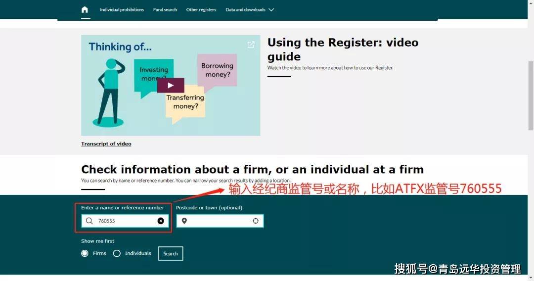 2、 拘押查问的寻求框转变较大,能够说和旧版的全体区别。旧版拘押查问界面的主体即是一个寻求框,名称为“Search the Financial Services Register”,翻译为“寻求注册的金融任事”。这句话本来斗劲难清楚,也存正在必然水平的歧义。改版后的页面变得越发亲民和接地气,比坊镳样的寻求框,新的名称为:“Check information about a firm, or an individual at a firm”,翻译为“检查企业或者一面的联系新闻”,这就要比旧版的名称容易清楚的众。除了这一重点性能外,该页面另有其余的辅助性能,例如“How to use the Register(奈何利用注页数面)”、“Using the Register: video guide(视频版教程)”、“Find financial services in your area(寻求你身边的金融任事)”等等。