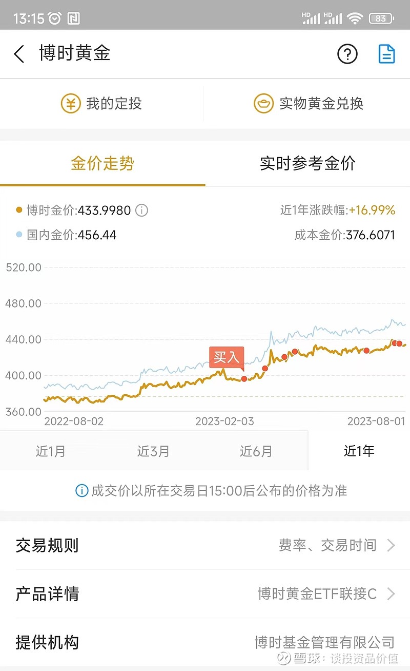 博时黄金是邦内范围最大的黄金ETF,跟踪偏差低管制用度低,通常定投我会采选博时黄金ETF,其他黄金ETF再有易方达黄金ETF华安黄金ETF。