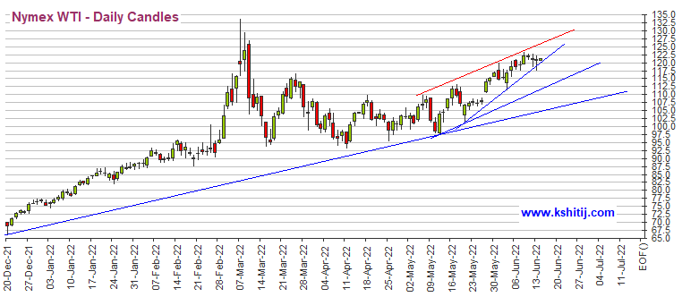 WTI原油期货昨日从117.50美元/桶反弹。只消维持正在117.50美元/桶上方,那么WTI油价仍有升向125/126美元/桶的空间。一朝跌破117.50美元/桶,就会将代价拉低至112.50美元/桶。
