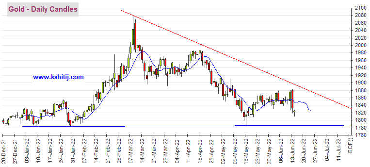 黄金方面,Kshitij商榷供职团队指出,因为美元连接走强,黄金期货大幅下跌,一度跌破1825美元/盎司。期金仍有进一步跌向短期撑持1800/1780美元/盎司的空间。