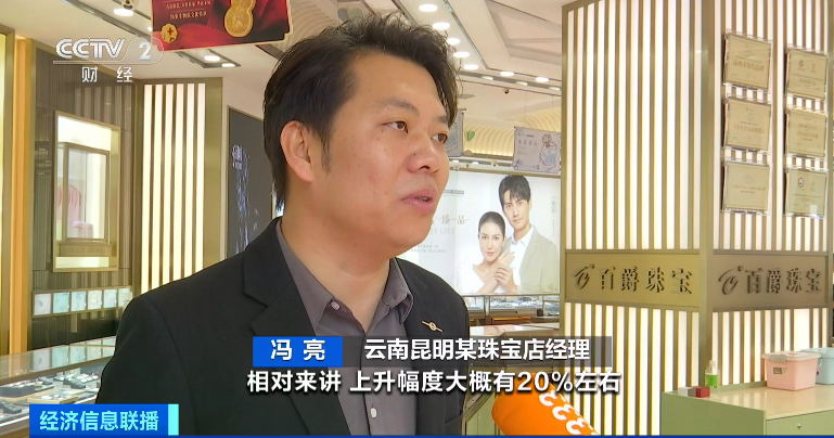 云南昆明某珠宝店司理 冯亮 :本年商场比起客岁来说,上升幅度简略有20%。