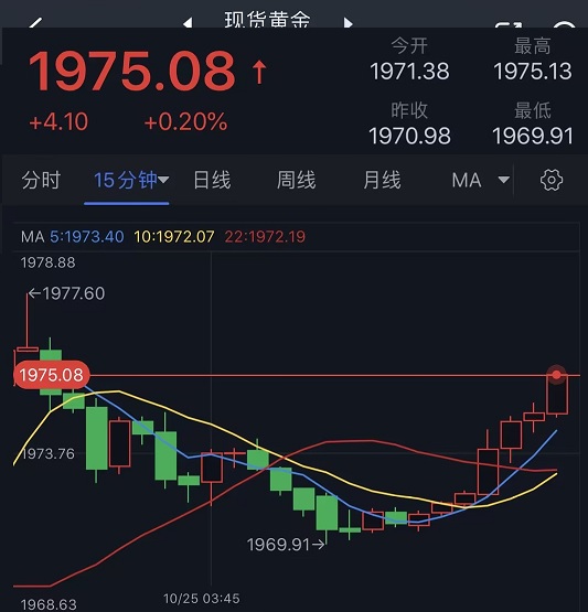 而债券收益率变化等先前的主导因素已退居次要地位浙江美黄金期货开户周三(10月25日)亚市早盘,现货黄金短线蓦然加快上升,金价方才触及1975美元/盎司,革新时段高点。