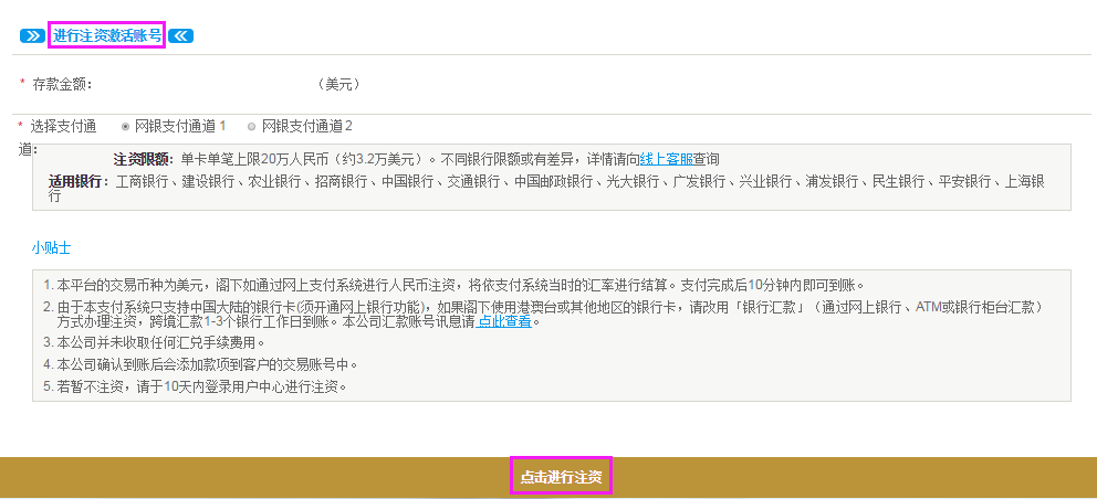 最终,投资者提交基来源料后将得回领峰用户核心的会员账号和暗号。倘使顿时注资对账号激活,领峰收到金钱后10分钟将开出MT4营业账号,投资者即可进入营业平台操作。别的,投资者正在领峰注资不设入金条件,最低只消0.01手即可营业,大大下降了入市门槛。