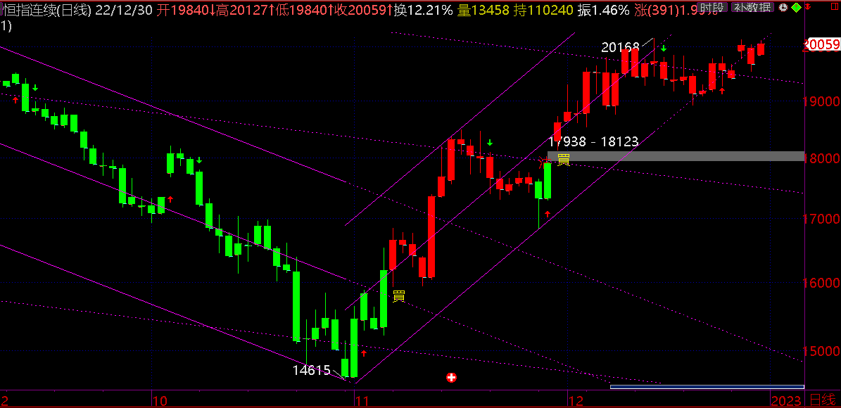 12.23:=》跌破波段上升通道,不站穩 34000之上,照旧有機會開始短線回調;