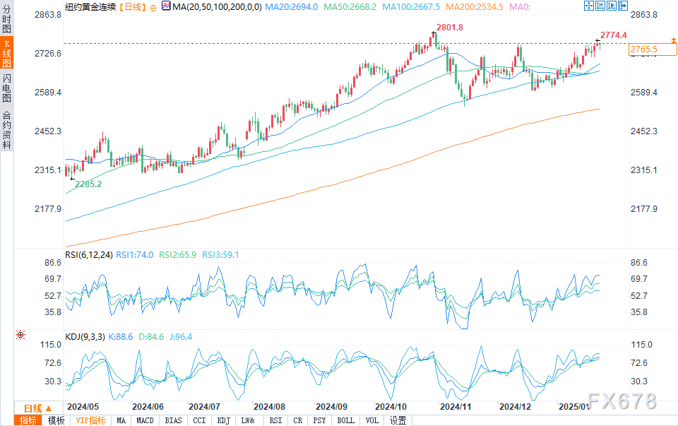 从时间层面看,COMEX黄金期货众头近期整个时间上风稳定。正在K线图上代价呈上升趋向。众头的下一个上行代价方向是正在合约高位2,826.30美元上方收盘。空头的下一个短期下行方向是将期货代价推至坚实的时间支柱位2,675.00美元以下。首个阻力位睹于隔夜高点2,766.40美元,然后是本周高点2,774.40美元。第一个支柱位睹于2,750美元,然后是本日的低点2,741.00美元。