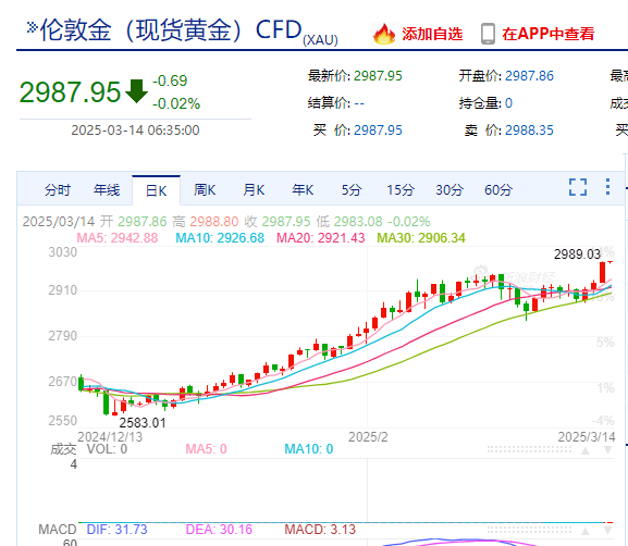 截至发稿,现货黄金报2987.95美元/盎司。因闭税不确定性加剧以及市集押注美联储将松开钱银战略,鞭策黄金的吸引力络续巩固。