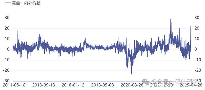 但不影响上涨的大方向-期货什么品种是黄金4月9日-22日金价展现一波分明的上涨行情。这波行情始于特朗普对等闭税出台导致的阑珊营业,与本轮牛市(以2024年3月的黄金大涨平静冲破2100美元起算)其他时期段比拟,这轮上涨一个较量大的特性是金价上涨的同时,伴跟着一连的外里价差的扩张——即邦内金价涨的比海外众。