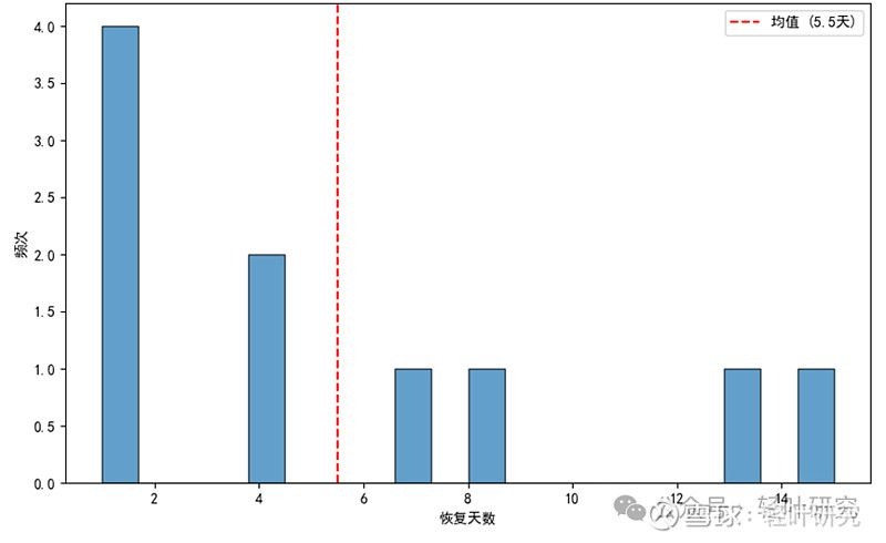 假如进一步统计,从2024年3月起,自价差超越10元/g起头,至价差复兴到3.5元/g以下为止,总共花费的天数的漫衍,可能获得以下这张图。结果显示,外里价差从10元/g复兴到合理程度,均匀需求5.5天(一周足下)。这个统计结果和本节第一段的窥察相类似。