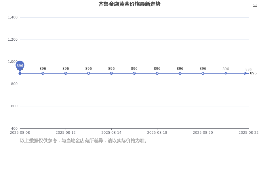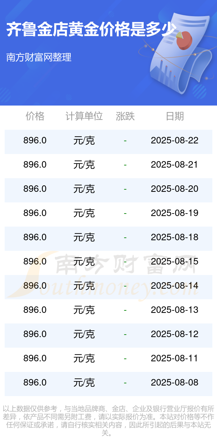 今日(2025年8月23日),齐鲁金店黄金代价最新代价为896.0元/克。