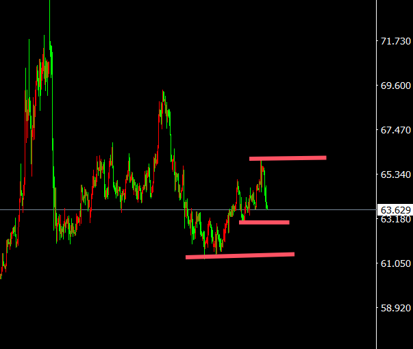 原油周三惊动下行,当天最高65.7,最低63.7,日线,日线看金价呈大区间惊动,下方合心63打破情状,下破进一步下看62,四小时线,区间惊动,又有下跌的空间,小时线不破无间惊动,综述日内操作思绪先支柱惊动