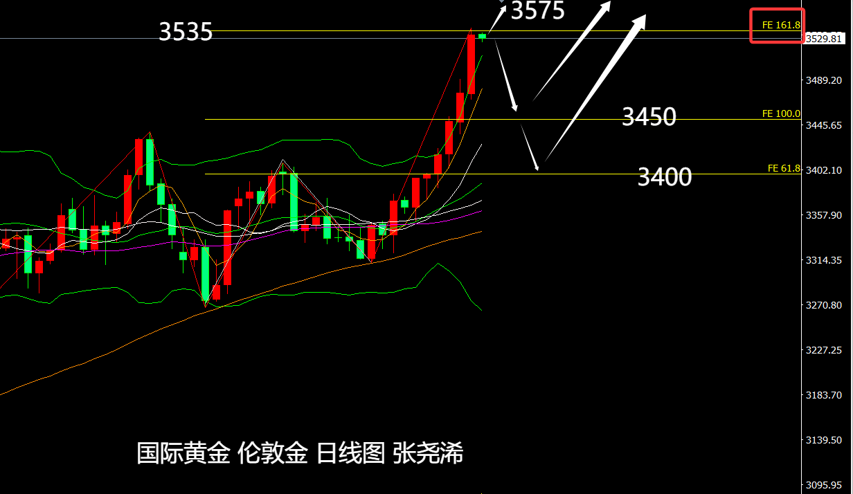 白银:下方关注40.65美元或40.35美元支撑;上方关注41.25美元或41.45美元阻力;追梦人黄金期货直播室上往还日周二(9月2日):邦际黄金得益于避险心绪和降息预期的接续升温,赓续强势反弹收阳,依期触及给出的扩展线日收取阳线,再度鼎新史书高点,众头动力持稳,后市来看仍有赓续走强的空间和趋向,但目前触及主意阻力,也需戒备回调的危害,那么正在进一步反弹冲破周二高点之前,郑重遇阻回撤至3450或3400美元相近支柱的再度入场看涨时机。