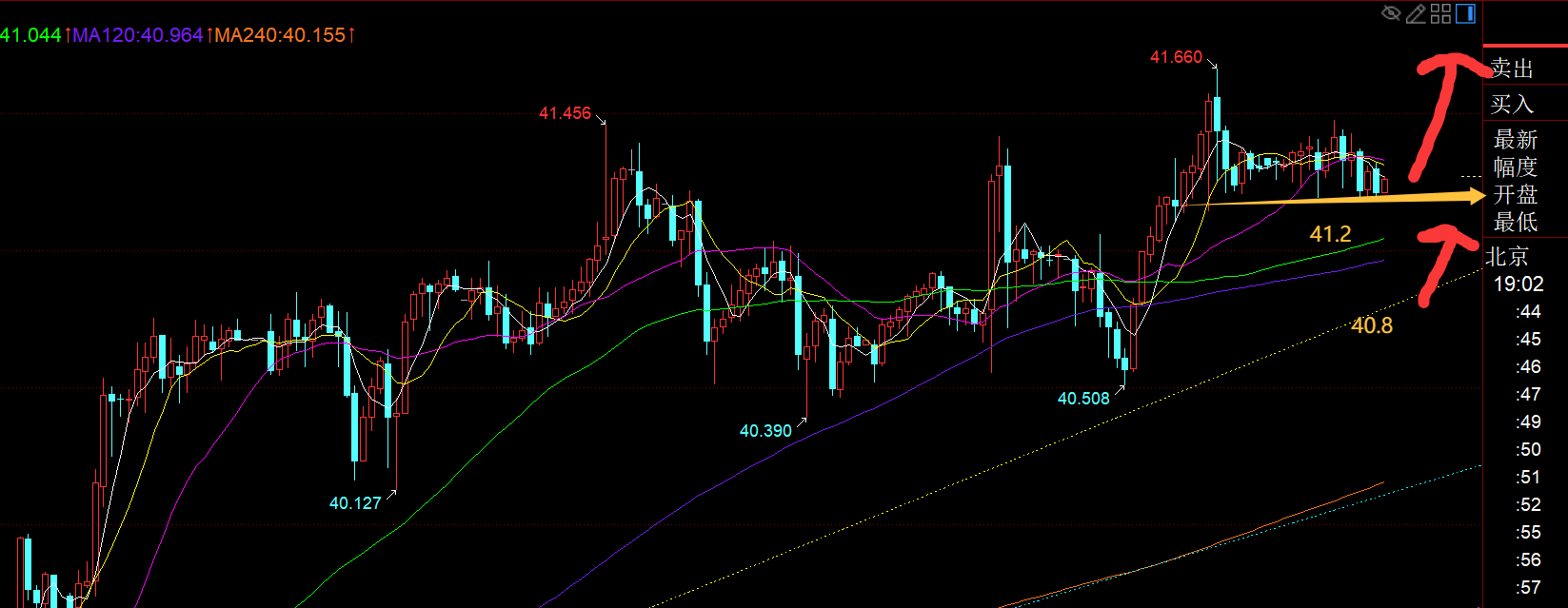 第二,白银方面:昨日测试40.6-40.4轰动下轨支持后,也是准期拉升,再次抵达41.4标的;
